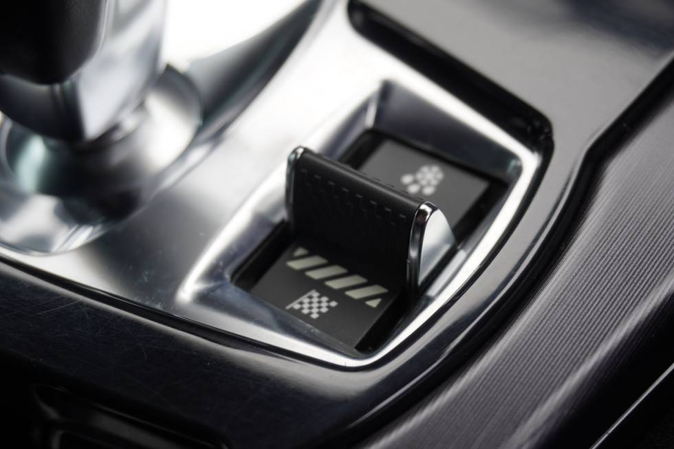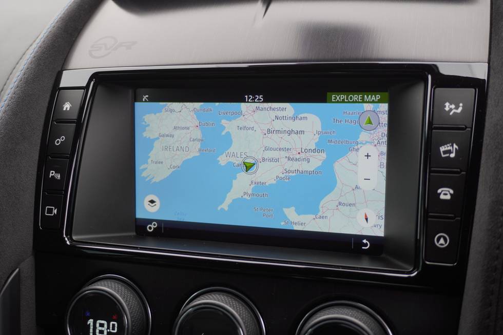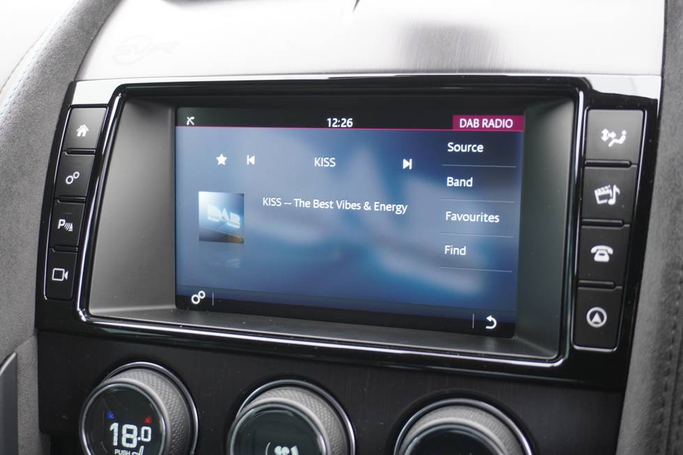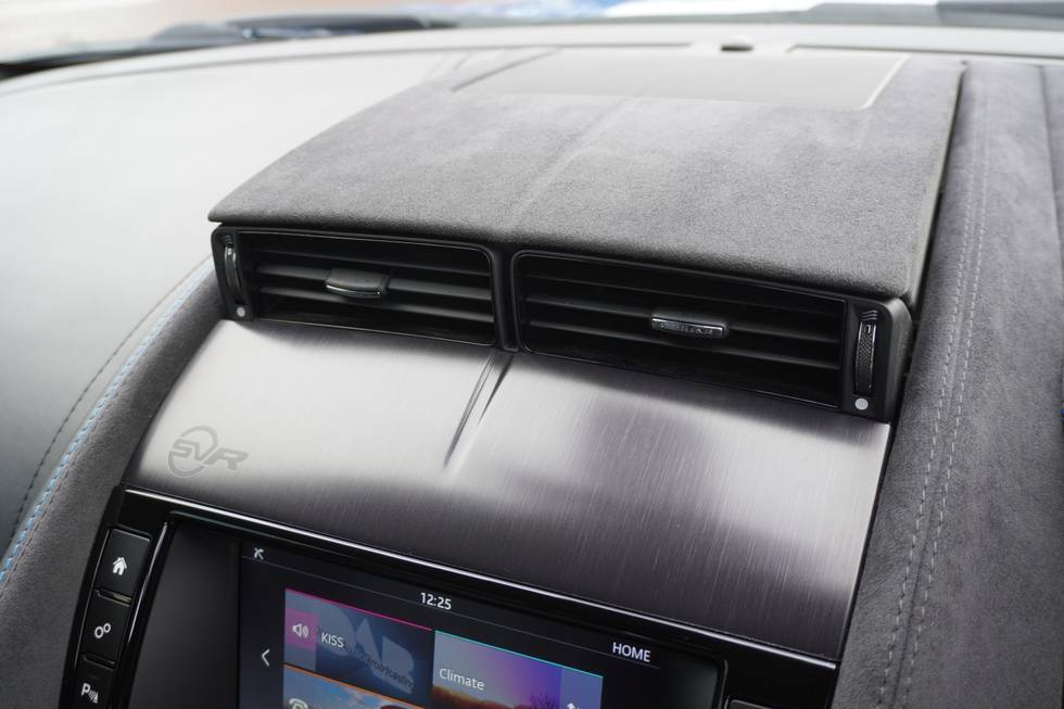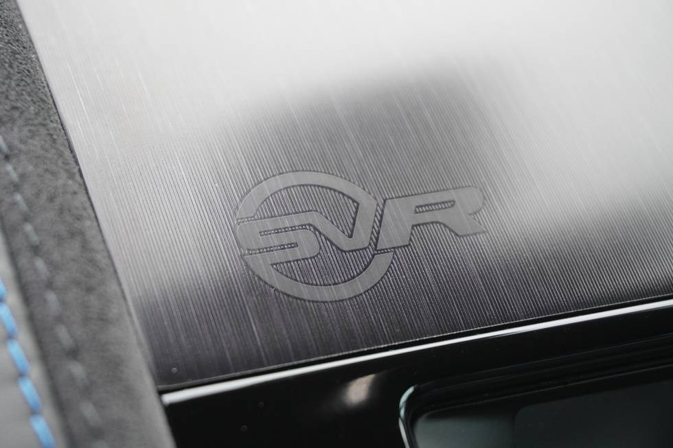 - Dark brushed aluminium centre console with SVR branding